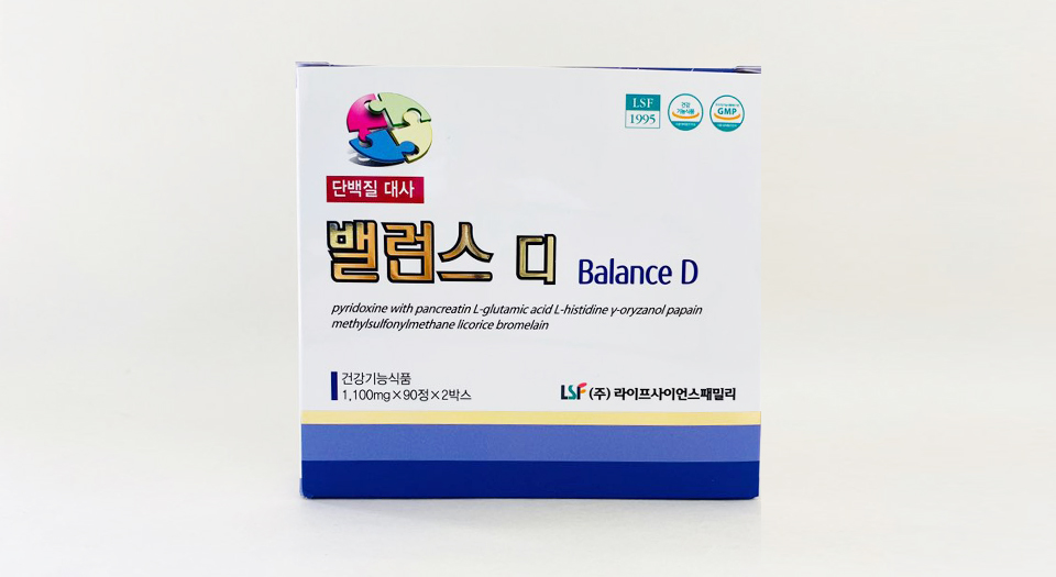 | 원재료명 및 함량 | 비타민B6염산염, γ-오리자놀, L-글루탐산, L-히스티딘, 판크레아틴, 파파인, 프로테아제, 엠에스엠, 감초추출물, 밀크씨슬, 계피가지추출물, 산화아연, 니코틴산아미드, 비타민B1염산염, 비타민B2, 판토텐산칼슘, 비오틴, 비타민C, 비타민A |