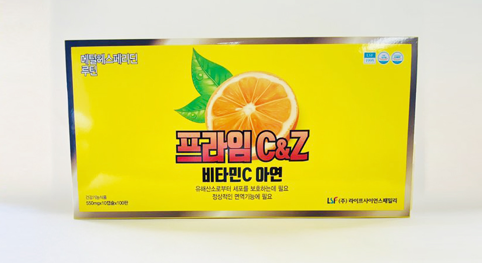 | 섭취량/섭취방법 | 2캅셀(1,100mg)당/기능성분함량 비타민C 1,000mg 아연 3.2mg 열량 0 kcal |