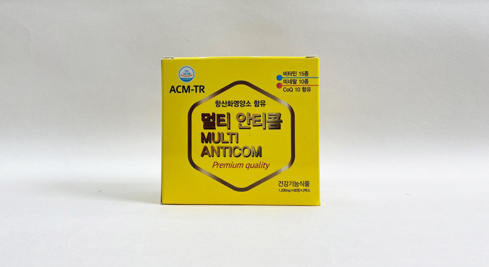 | 원재료명 및 함량 | 셀레늄, 크롬, 칼슘, 마그네슘, 아연, 망간, 구리, 철, 요오드, 몰리브덴, 베타카로틴, 비타민D3, 비타민E, 비타민C, 헤스페리딘, 비타민B1염산염, 비타민B2, 니코틴산아미드, 판토텐산칼슘, 비타민B6염산염, 엽산, 비타민B12, 비오틴, 콜린, 이노시톨, 코엔자임큐10, 파파인, L-발린, L-로이신, L-이소로이신, L-메티오닌, L-라이신, L-히스티딘 |